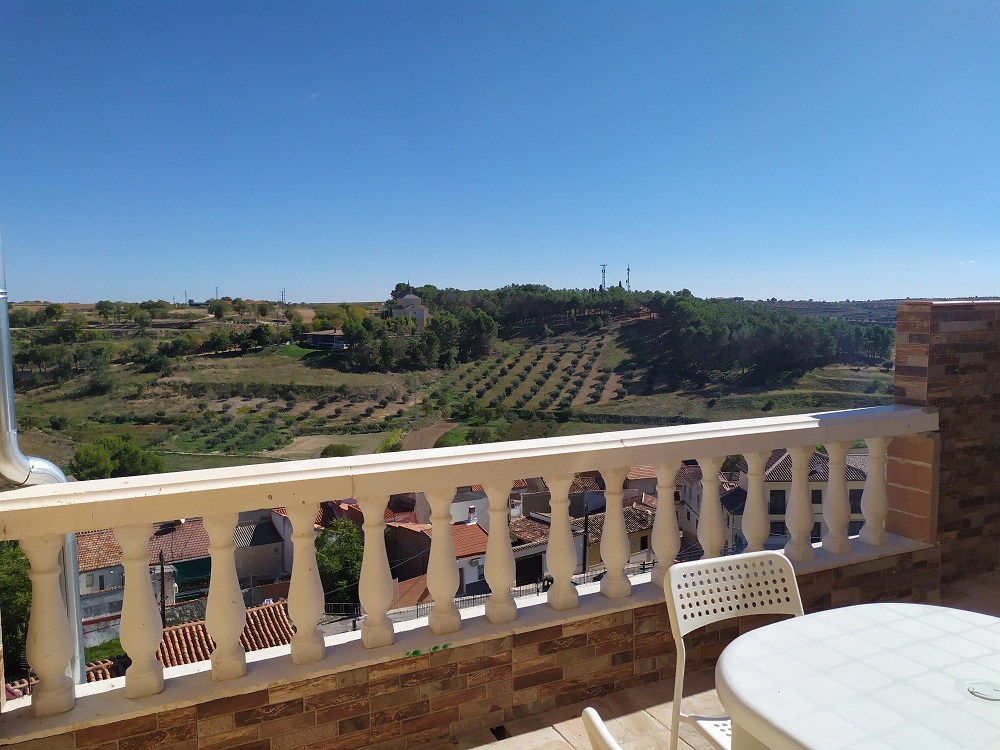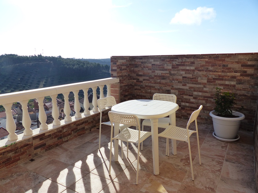 Televisión, aparato de aire, reproductor cd, libros, peliculas y juegos de mesa. Terraza con vistas.