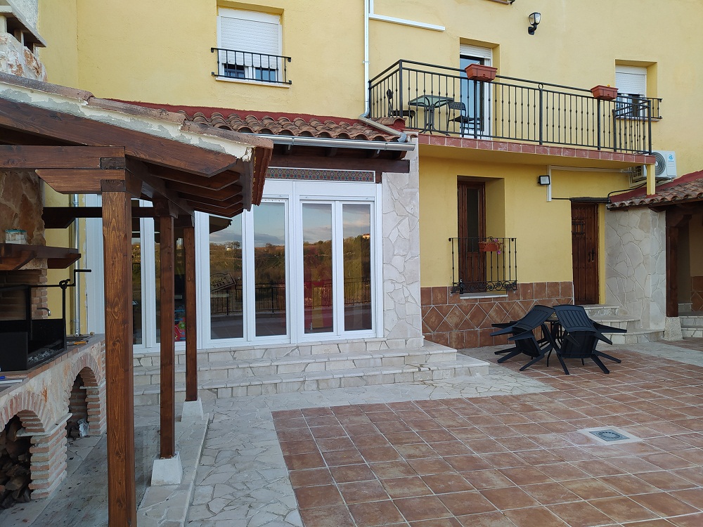Barbacoa y utensilios, porche techado con posibilidad de cierre y estufa de pellets. Piscina de temporada.
